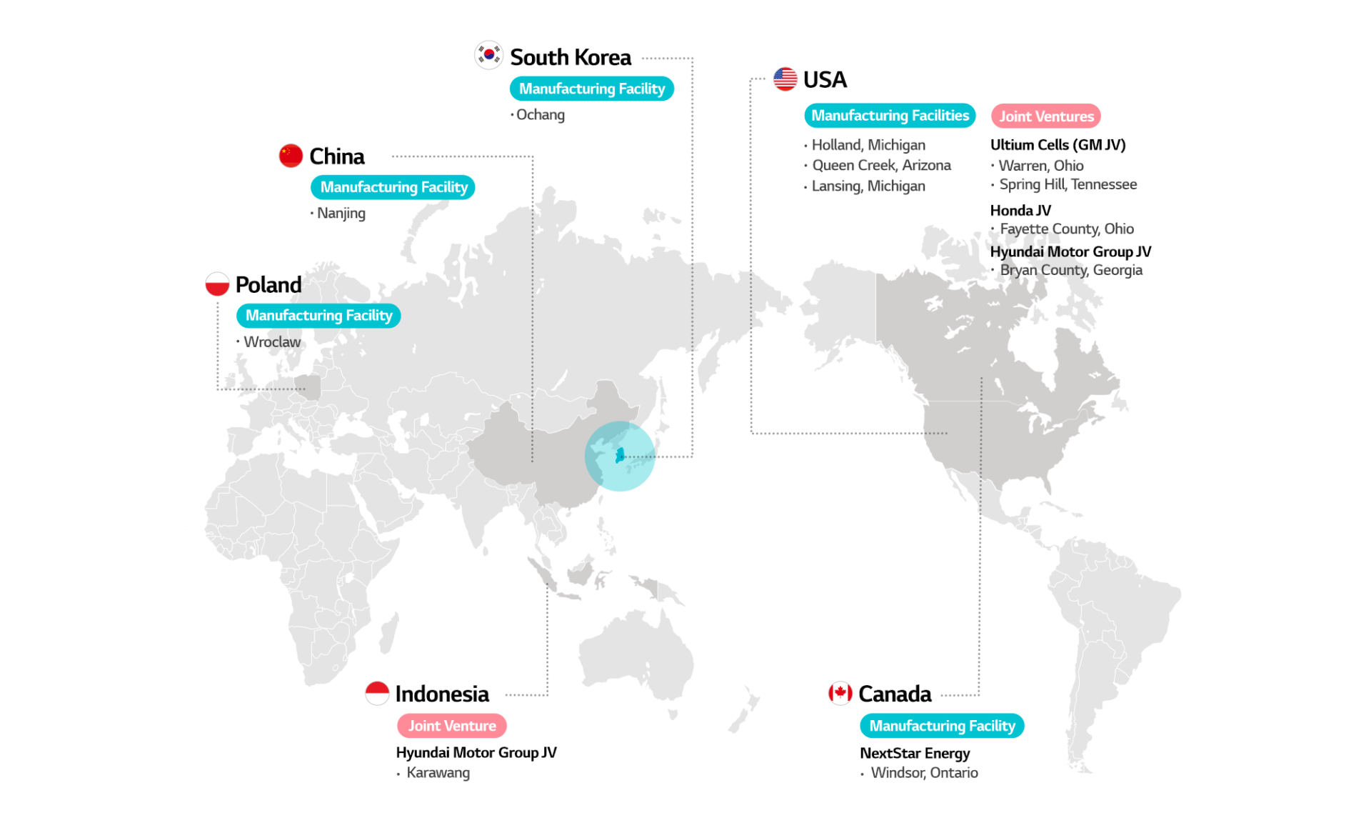 LG Energy Solution is continuously expanding the global production capabilities. We are establishing manufacturing facilities in North America, Europe, and Asia while maximizing our production capacity through joint ventures with OEMs.